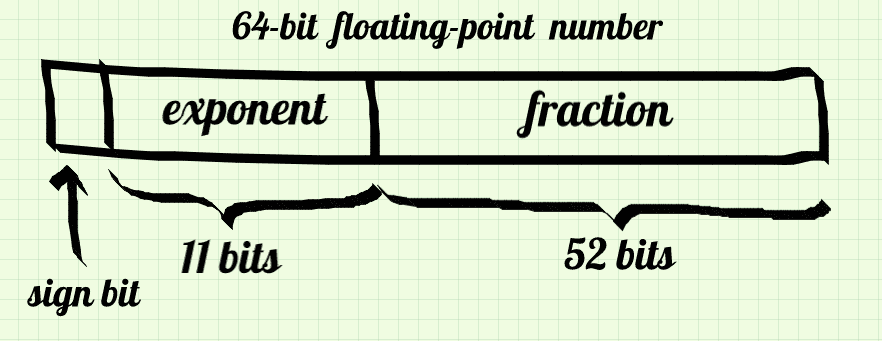 There is one bit that says whether the number is negative or positive, 11 bits for exponent and 52 bits of the fraction part, also called mantissa.