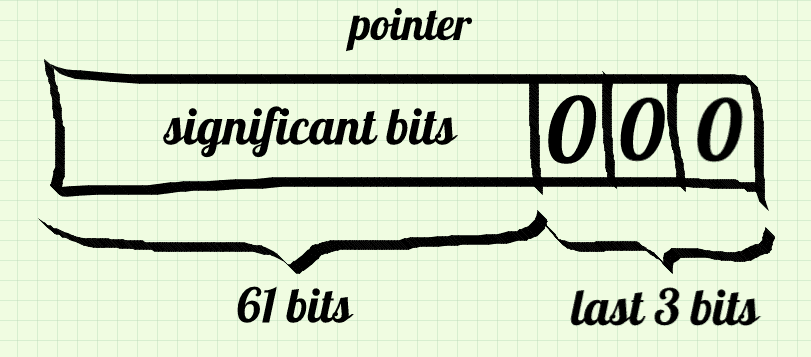 Tagged pointers are actually used. It means that they are fairly good. Actually, they take only 8 bytes on 64-bit machines or even 4 bytes on 32-bit ones. Reading and storing data, when we have those macros defined above, is still pretty easy and fast, as processing units are very keen on bitwise operations. Moreover, there is still a chance that our macros can be optimized by compilers for specific platforms. Finally, they are pretty portable — allocators tend to behave gracefully and align memory cells to multiples of 8.
